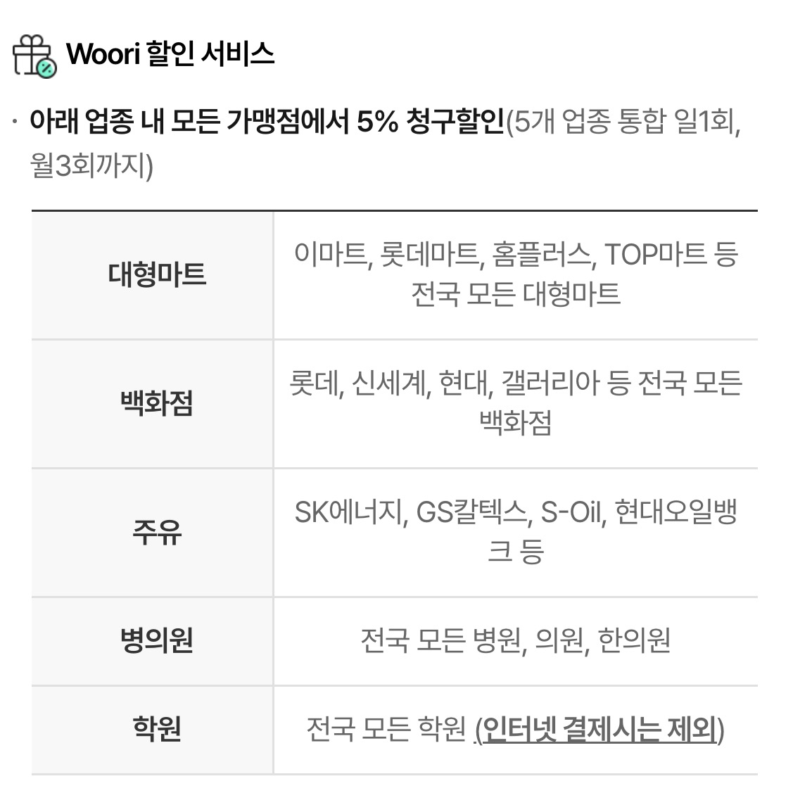 우리 카드 할인 서비스는 할인 한도 있습니다